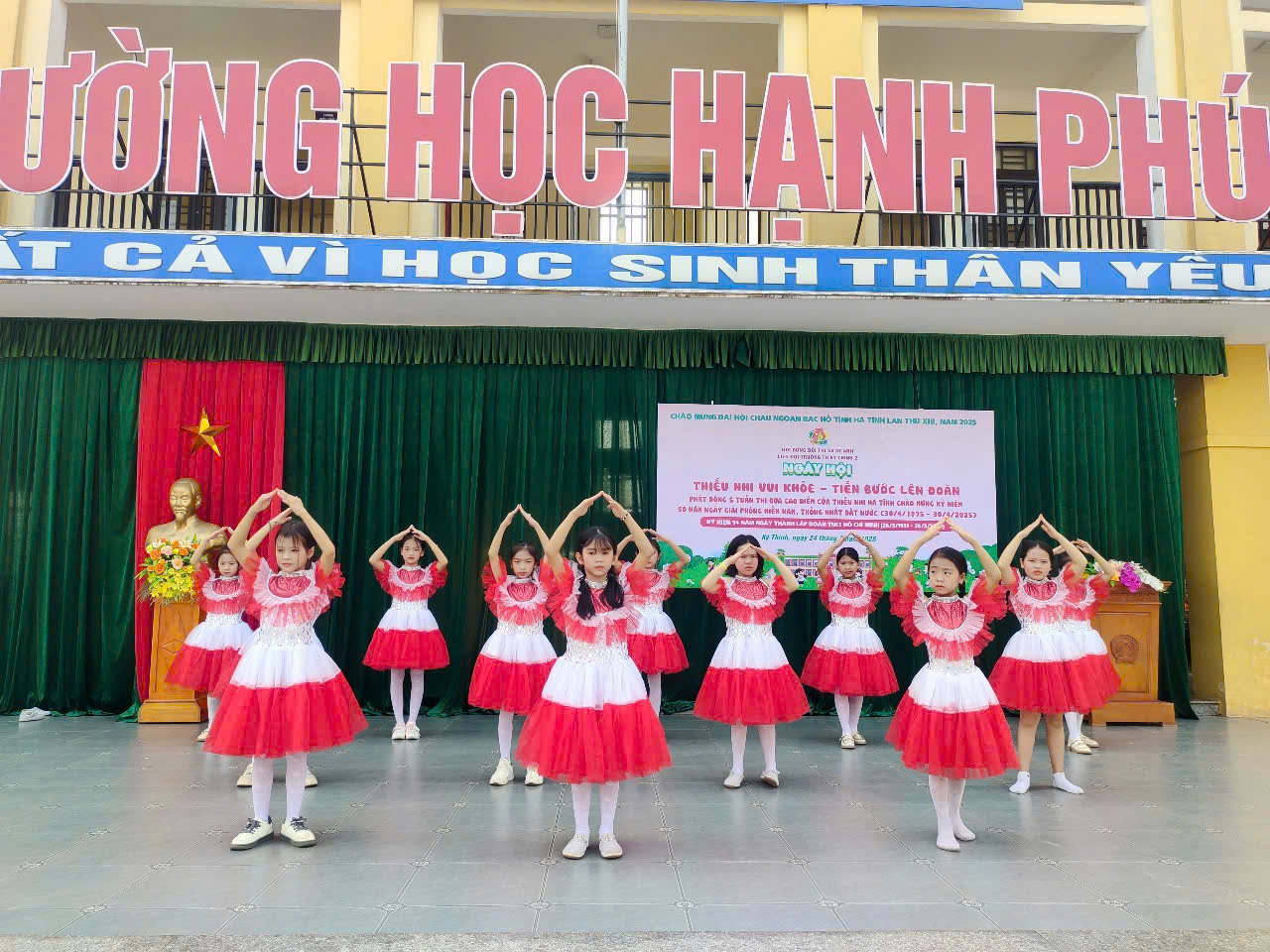 Tổ chức xếp hình bản đồ Việt Nam trên nền nhạc: Bài : Những bông hoa Cháu Ngoan Bác Hồ.