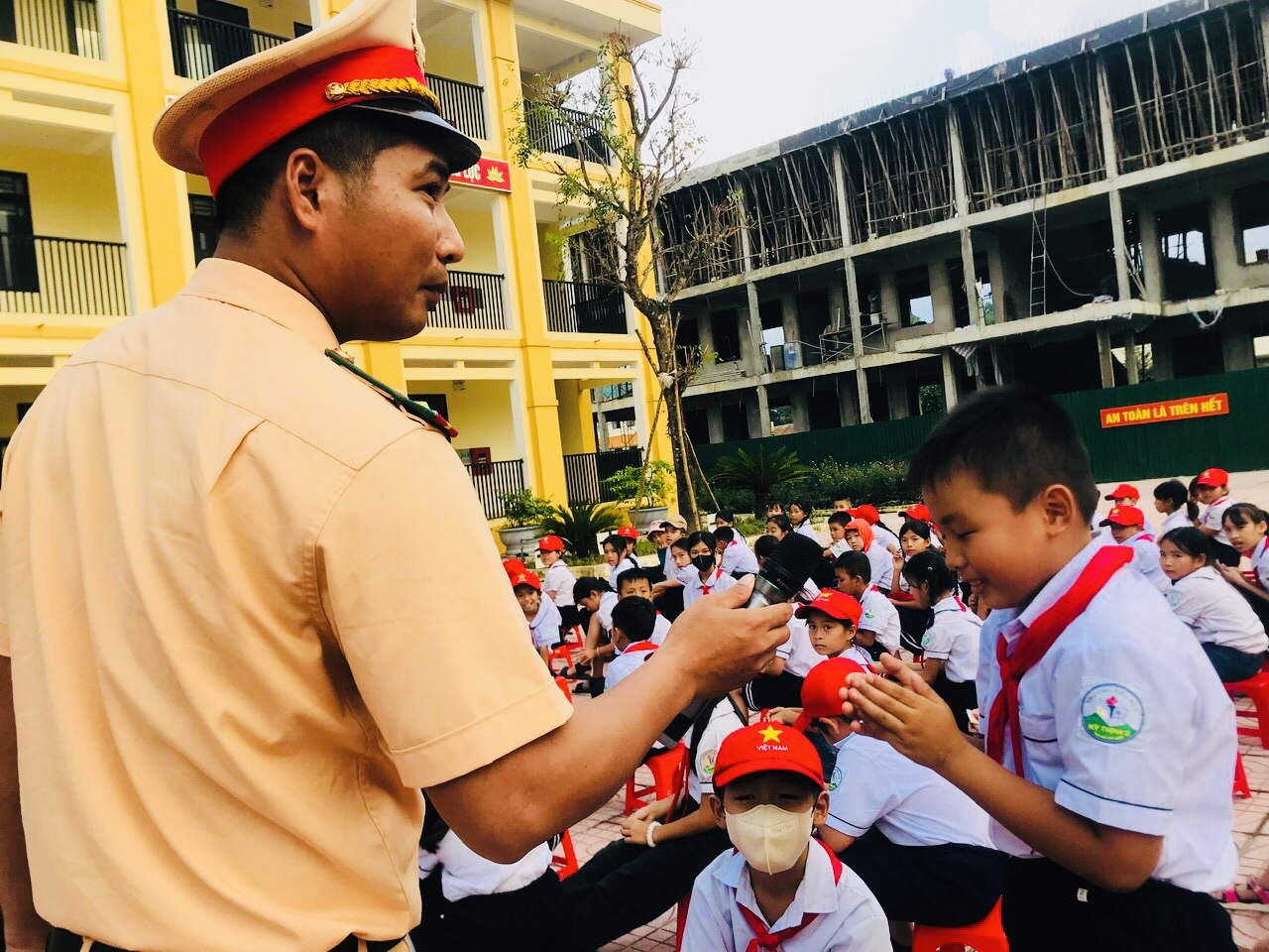 Tại chương trình, các em học sinh nghiêm túc lắng nghe Đại úy Nguyễn Đình Nhu - Phó trưởng Công an phường Kỳ Thịnh tuyên truyền về các quy định của Luật Giao thông đường bộ như thực trạng tai nạn giao thông hiện nay, một số nguyên nhân gây tai nạn giao thông thường gặp; tác dụng của việc đội mũ bảo hiểm và đội mũ đúng cách khi tham gia giao thông; hướng dẫn sử dụng phương tiện phòng chống cháy nổ, cách phòng chống xâm hại,....