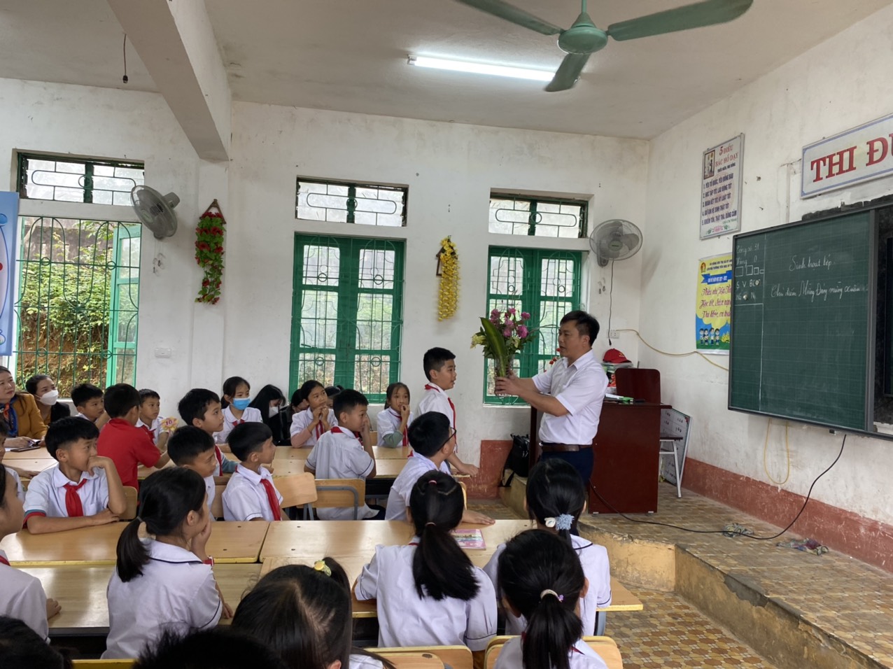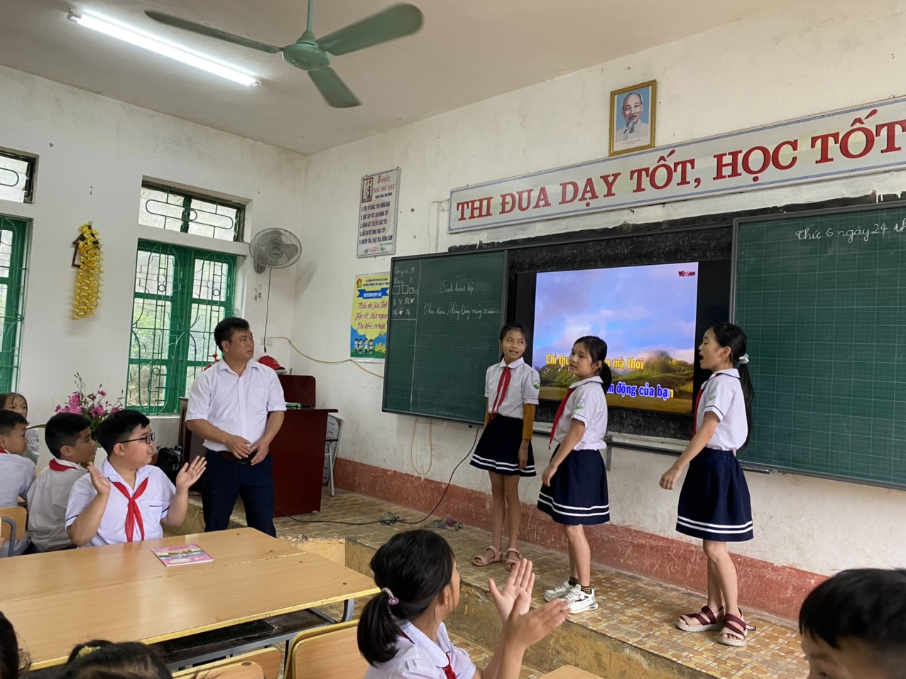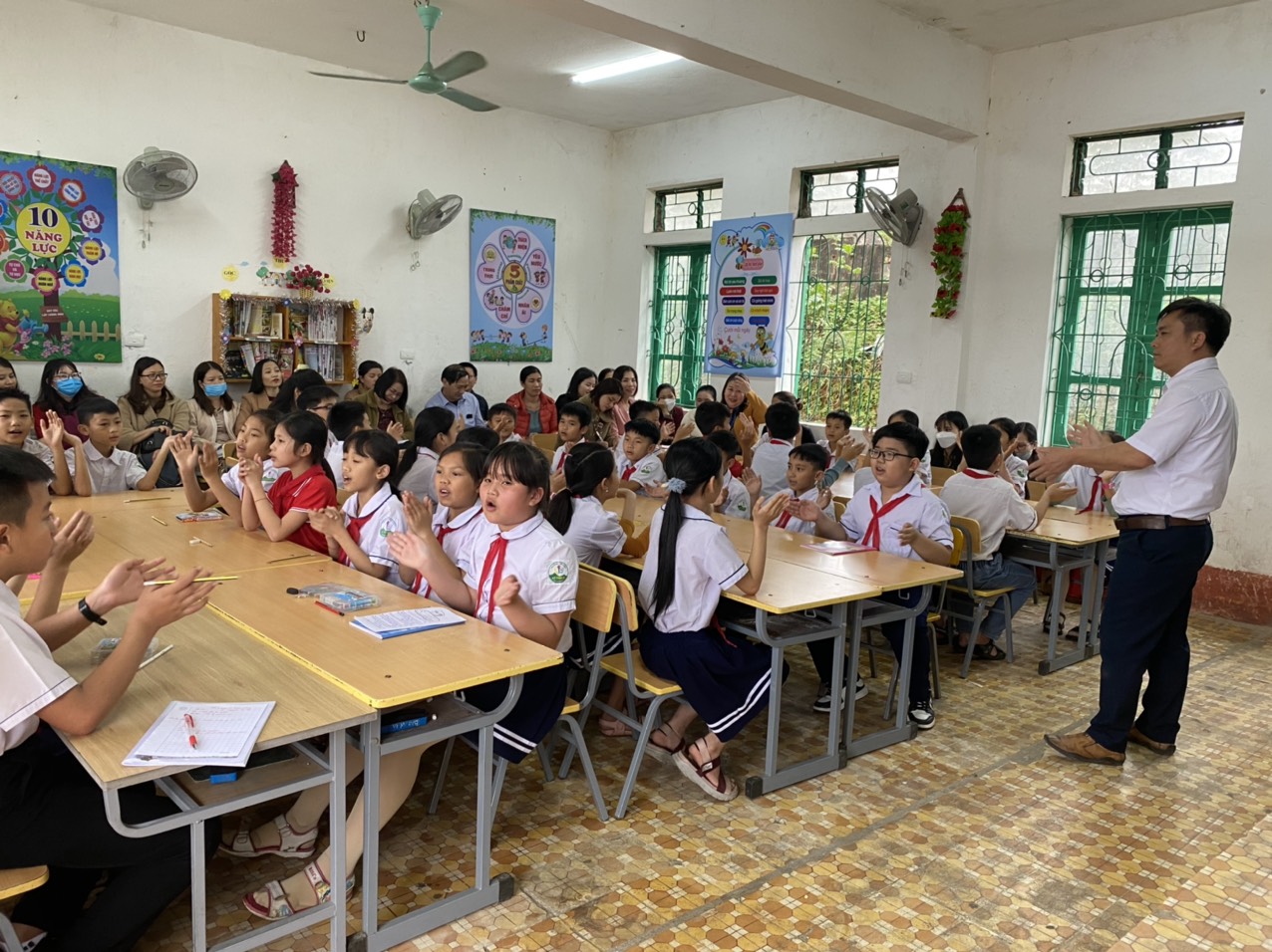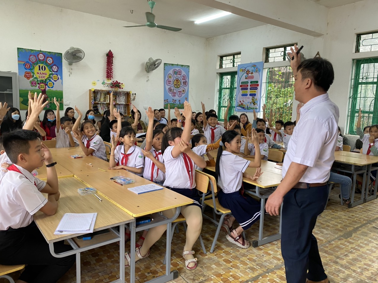Tiết Hoạt động trải nghiệm với chủ điểm: "Mừng Đảng Mừng Xuân" của thầy giáo Lê Văn Mạnh giáo viên chủ nhiệm lớp 5A sôi nổi, hào hứng, nhịp nhàng. Học sinh tự tin điều khiển các nội dung học tập dưới sự dẫn dắt của thầy giáo.Tiết hoạt động trải nghiệm của thầy giáo Lê Văn Mạnh -GV Chủ nhiệm lớp 5A Trong tiết học, các em được chơi trò chơi Ai là Triệu Phú trả lời trắc nghiệm về những kiến thức liên quan đến nội quy của lớp học, nề nếp học đường và tác phong của người Đội viên. Ngoài ra các em học sinh được xem trực quan clip về sự ra đời của Đảng Cộng Sản Việt Nam làm khắc sâu thêm các kiến thức về Tổ chức Đảng cộng Sản Việt Nam do Bác Hồ sáng lập.