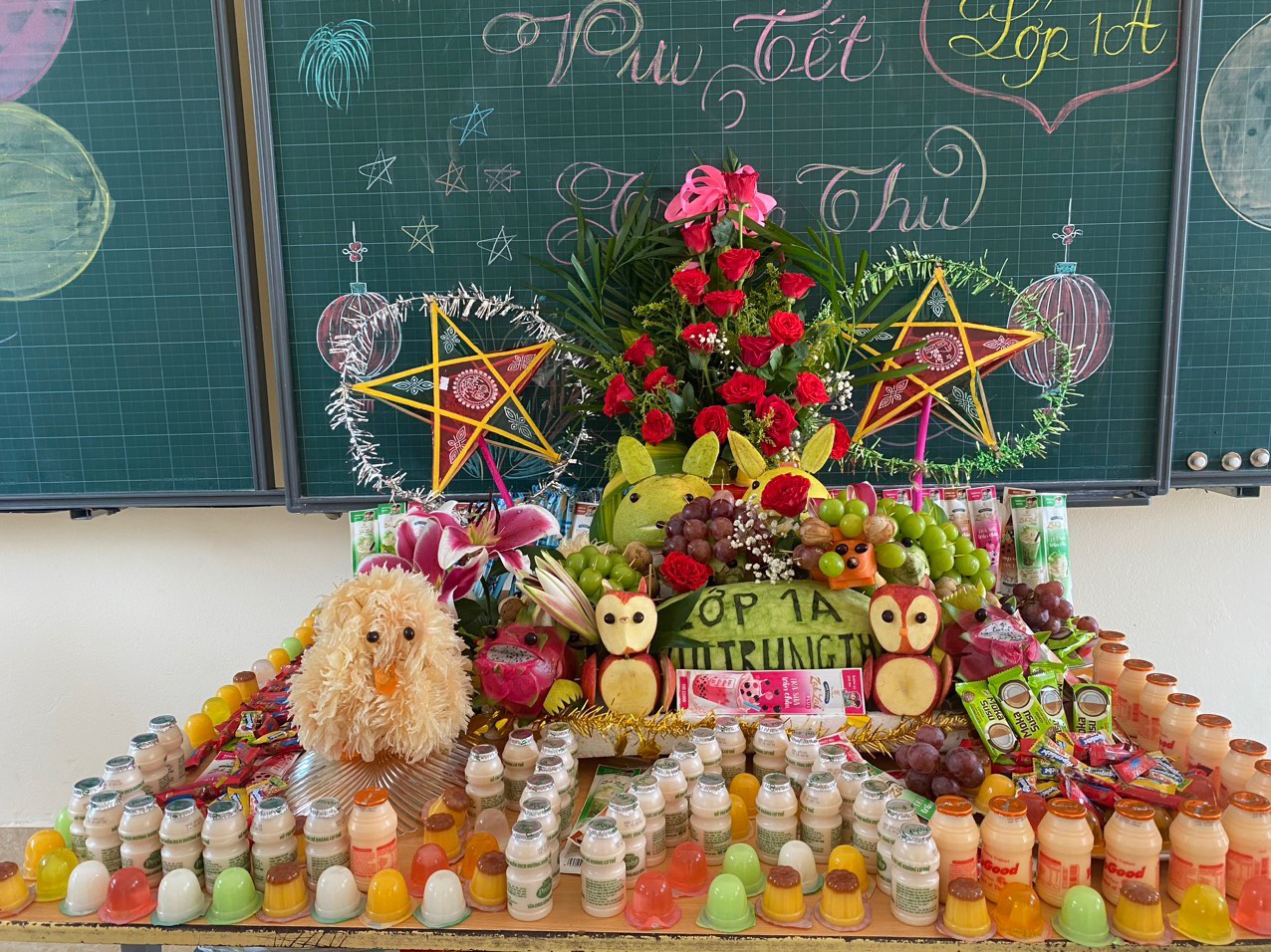 Không chỉ dừng lại ở đó, sau chương trình trung thu được tổ chức ở sân trường các bạn lại được vui trung thu tại lớp học của mình. Tại đây các em được tham gia trải nghiệm sắp mâm cỗ trung thu “ Trung thu yêu thương, chúng em cùng trải nghiệm” . Các lớp không chỉ chuẩn bị các mâm cỗ trưng bày những sản vật của địa phương mà còn thể hiện sự khéo léo của đôi tay qua việc thiết kế những chiếc đèn ông sao, những con vật hết sức ngộ nghĩnh mang đậm màu sắc dân gian. Các bậc phụ huynh và học sinh cùng nhau trang trí và làm ra những mâm cỗ trung thu rất đẹp mắt, công phu và tỉ mỉ mang đậm phong cách riêng của từng lớp. Mỗi lớp một ý tưởng khác nhau nhưng đều mang một cảm giác thân quen ấm cúng.